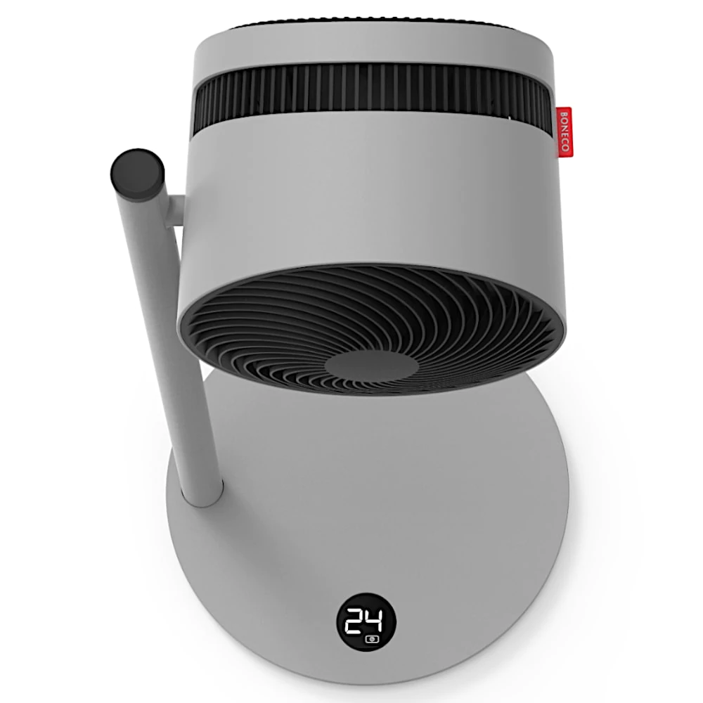 BONECO F225 Ventilator ist ein höhenverstellbarer SMART-Lüfter mit Bluetooth. Der BONECO App bietet eine intuitive Benutzerführung und Navigation und ermöglicht die Regelung der 32 Geschwindigkeitsstufen (1 - 16 sind für direkte Kühlung und 17 - 32 für indirekte Kühlung vorgesehen). Mit der BONECO App können Sie auch die Timer-Funktion und die Anzeigedimmstufen je nach Nutzerpräferenz anpassen. Die aerodynamischen Lüfterblätter sorgen für eine starke Luftzirkulation und das Hochleistungsgebläse kann manuell om 270° gedreht werden. Der Luftstrom kann einfach gergelt werden, er arbeitet geräuscharm und sorgt für ein angenehmes Air Shower-Gefühl in Räumen bis 80 m² (mit einer Prozessluft von 1.500 m³/h). Testsieger des ETM Testmagazin und ausgezeichnet mit dem Red Dot Design Award.