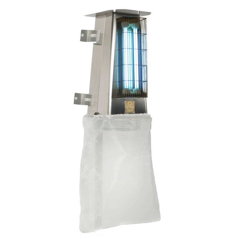 Trappen Tornado UV-Insektenvernichter - erhältlich als Stand- oder Wandgerät Der Trappen Tornado UV Insektenvernichter ist ein professioneller Fluginsektenvernichter, der speziell für die Bekämpfung extrem hoher Insektenbelastungen entwickelt wurde. Ideal für den Einsatz in großen Räumen bis 300 m². Er bietet Ihnen eine hygienische Bekämpfung von Fluginsekten, ganz ohne Einsatz von Insektiziden und Giftstoffen. Der Fluginsektenvernichter Tornado ist leistungsstark, effizient und kann in verschiedenen Branchen zur ökologischen Insektenbekämpfung eingesetzt werden: in Cafés, Bäckereien, Metzgereien, Kantinen, Großküchen, Restaurants, Büroräumen, Einkaufszentren, Fabriken, Ställe oder anderen gewerblichen oder privaten Räumlichkeiten. Auch für Bereiche mit HACCP- und Hygienevorschriften geeignet. Funktionsweise des Fluginsektenvernichters Trappen Tornado: Kernstück der Wespenfalle ist eine spezielle UV-Röhre in bewährter Qualität. Wespen und andere Fluginsekten werden durch die UV-Lichtröhre angelockt. Der leistungsstarke Propeller zieht die Fluginsekten in das Innere der UV-Wespenfalle und befördert die Wespen und Fliegen in den Perlonsack zur Austrocknung. Eine Verschlusskappe verhindert das Entweichen der gesammelten Fluginsekten. Der Perlonsack kann mühelos geleert und gereinigt werden. Das Gerät besitzt laut Hersteller eine hohe Fangquote, ist wartungsfrei und leicht zu reinigen. Auch die gefangenen Insekten lassen sich einfach und umweltfreundlich entsorgen. Erhältlich als Stand- oder Wandgerät. Die Befestigung bei der Wandmontage erfolgt mit 4 Haltern. Empfohlen wird eine Höhe von mindestens 2 m über dem Fußboden. Merkmale: Abmessungen: H 780 mm x T 470 mm x B 420 mm (Wandmontage) Gewicht: 14 kg Stromversorgung: 230 Volt - 50 Hz - 140 Watt Aktinische UV-Lampe): 2 x 30 Watt Perlonbeutel-Volumen: 20 Liter (einfach zu entleeren) Professioneller Motor: IP44 Klassifizierung Ansauggeschwindigkeit: 0,7 m/s Material Gerät: Edelstahl Zertifiziert nach HACCP und EAR registriert Anwendungshinweis: Insektenvernichter mit UV-Lampen dürfen nicht im Freien verwendet werden. Es können auch Nützlinge angelockt und vernichtet werden. Trappen, Schädlingsbekämpfung