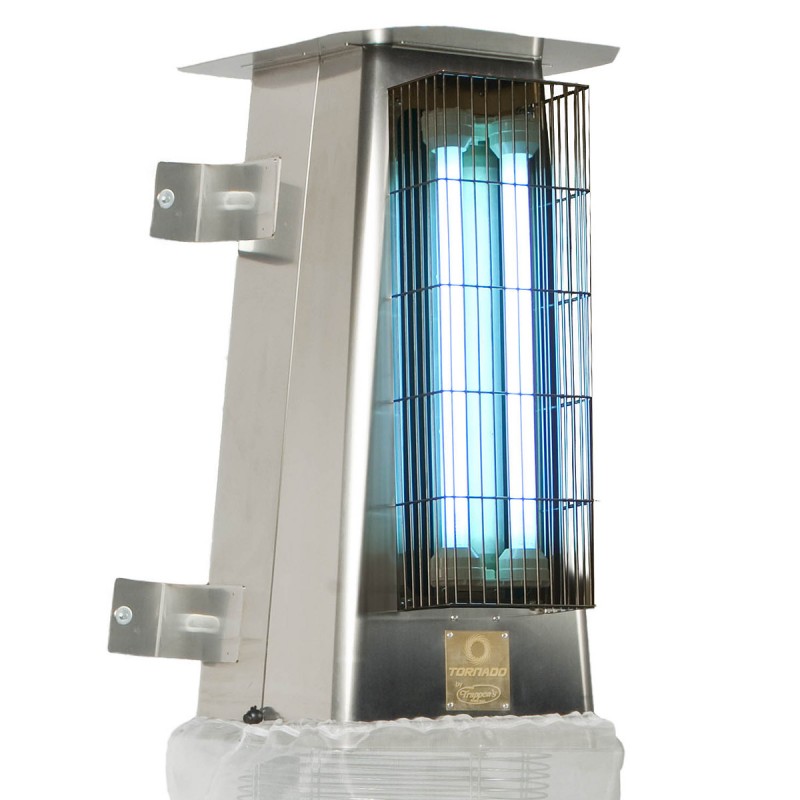 Trappen Tornado UV-Insektenvernichter ist ein professioneller Insekten- und Wespenvernichter mit zwei speziellen aktnischen 30 Watt UV-Lampen, die Insekten aller Art wie Fliegen, Wespen, Motten und Mücken anlocken. Ausgestattet mit einem leistungsstarken Propeller und Schutzart IP44 ist er als Stand- oder Wandgerät für Räume bis 300 m² erhältlich. Die Wespenfalle bietet Ihnen eine hygienische Bekämpfung von Fluginsekten, ganz ohne den Einsatz von Insektiziden und Giftstoffen - mit einer sehr hohen Fangquote! Zur ökologischen Insektenabwehr in Innenräumen wie beispielsweise Cafés, Bäckereien, Metzgereien, Kantinen, Großküchen, Restaurants, Büroräumen und vielen anderen Bereichen. Auch für Bereiche mit HACCP- und Hygienevorschriften geeignet.