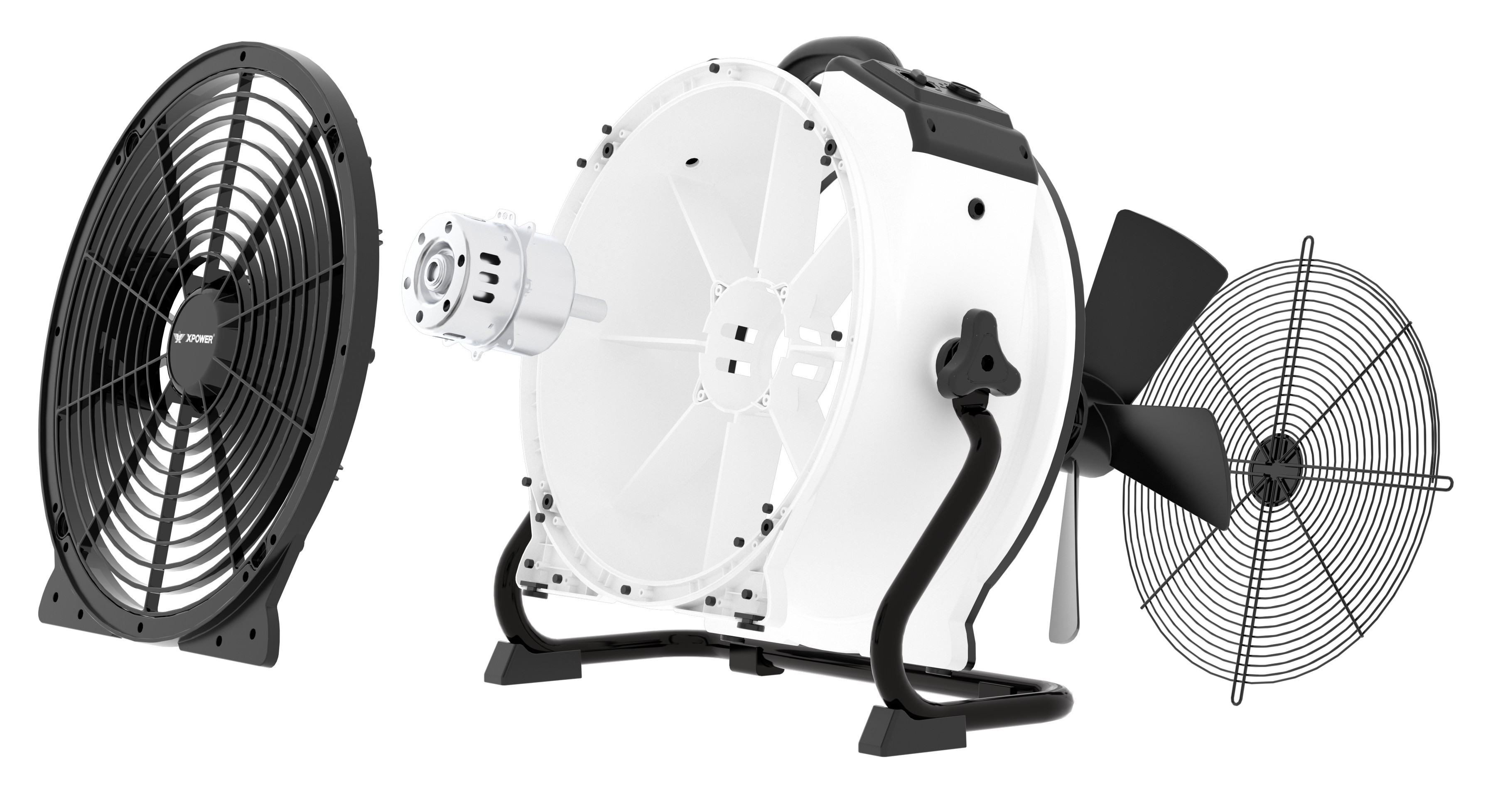 Der FC-420 erzeugt den höchsten Luftstrom innerhalb der XPOWER Professional Grade Air Circulator Utility Fans. Der leistungsstarke Induktionsmotor benötigt nur 2,8 Ampere und liefert beeindruckende 6100 m3/h. Das einzigartige Grilldesign fördert die Luftbewegung und sorgt sofort für effektivere Kühlung und eine verbesserte Luftqualität. Der FC-420 verfügt über Air Fin-Technologie, einen 360° drehbaren Rahmen/Ständer sowie einen 5-Stufen-Schalter, der eine gleichmäßige, gerichtete Luftbewegung ermöglicht, um jeden Raum schnell zu belüften. Der 3-Stunden Set-N-Forget Timer steigert die Produktivität und erspart es Ihnen, das Gerät manuell auszuschalten. Das leichte, kompakte Gerät ist stapelbar und mit einem integrierten Grab-N-Go Griff ausgestattet, der den Transport vom Lager zum Einsatzort erleichtert.